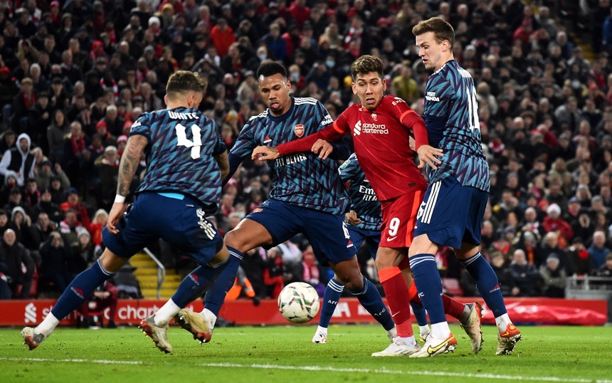 Arsenal resiste em Liverpool e segura nulo nas meias da Taça da Liga inglesa