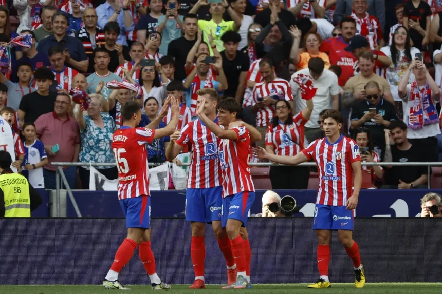 O argentino Julian Álvarez "bisou" na partida, que teve ainda golos de Griezmann e de Correa, que está de saída do clube, para confirmar o último lugar do pódio quando falta de um jogo, enquanto para o conjunto de Sevilha um remate acrobático de Fornals não bastou para se manterem na luta pela "Champions".