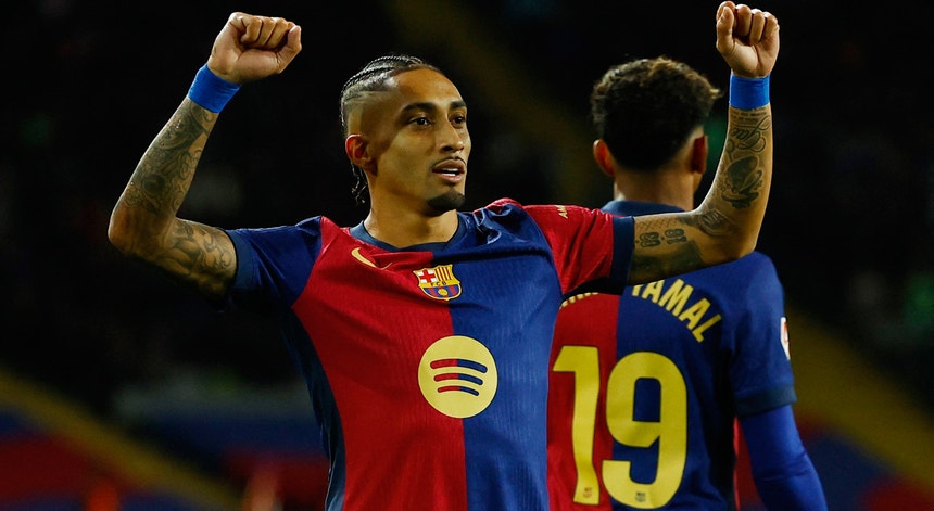 O primeiro remate certeiro foi da autoria do holandês Frenkie De Jong, aos três minutos, abrindo caminho para o 2-0, da autoria de Ferran Torres (8), com o brasileiro Raphinha (14) a deixar a partida, praticamente, resolvida.
