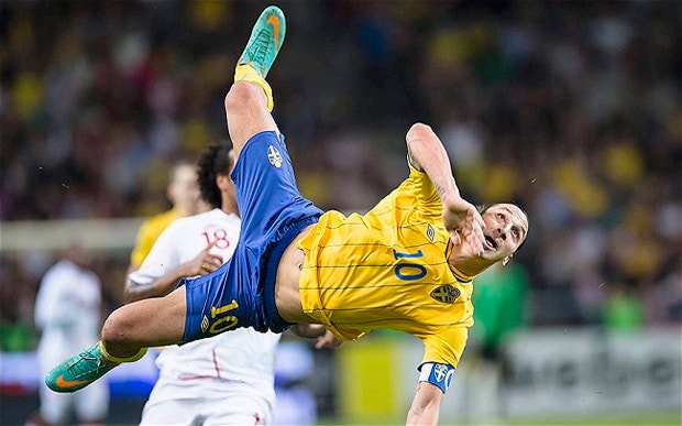 O avançado sueco surpreendeu todos com uma "bicicleta" de fora da área no um encontro de preparação com a Inglaterra.