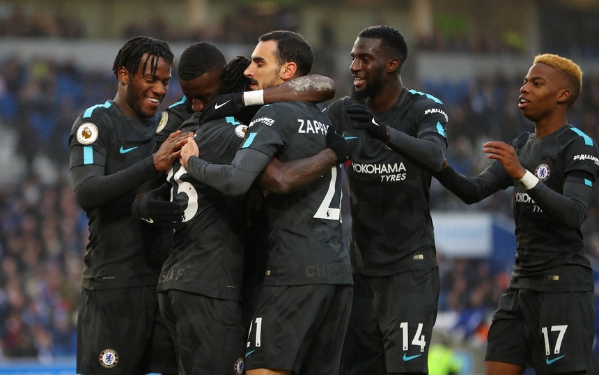O Chelsea, campeão inglês de futebol, alcançou hoje o Manchester United no segundo lugar do campeonato, ao golear por 4-0 no estádio do Brighton, no jogo de abertura da 24.ª jornada da prova.