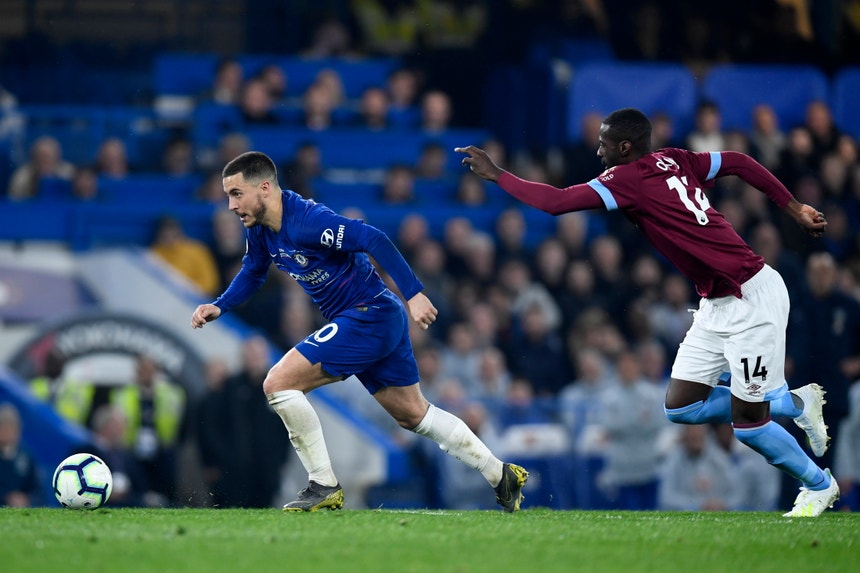 O West Ham foi massacrado na primeira parte, atingindo o intervalo com um lisonjeiro 1-0 apenas, fruto de um grande golo do número 10 da equipa, aos 24 minutos. Hazard recebeu a bola de Loftus-Cheek, ganhou a Noble na corrida, desembaraçou-se de Rice, Ogbonna e Balbuena, escapou ao desarme de Frederiks e atirou a contar.