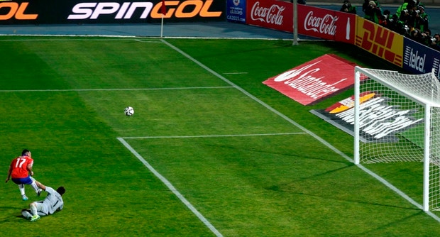 Charles Aranguiz 'bisou', aos 3 e 66 minutos, e foi uma das figuras do jogo, a par de Alexis Sanchez, que marcou aos 37, e Jorge Valdívia, autor de duas assistências, a segunda para Gary Medel apontar o quarto, aos 79. Ronald Raldes marcou o quinto, na própria baliza, aos 86.