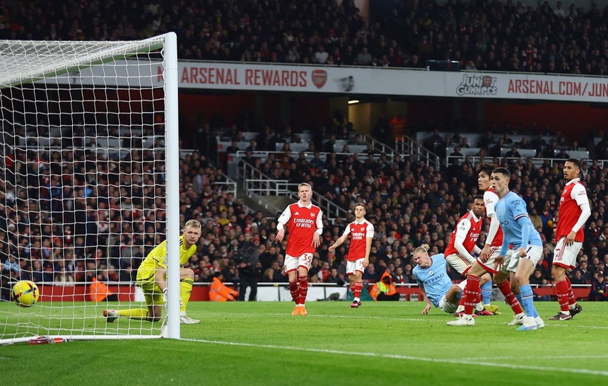 Os 'gunners' só estiveram a nível interessante no primeiro tempo, que fechou com empate, consequência do golo de Saka, aos 42, de grande penalidade. O português Fábio Vieira entrou aos 83 minutos, logo depois do golo de Haaland, quando já não havia grande coisa a fazer.