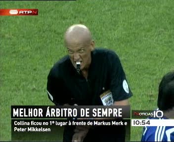 O italiano Pierluigi Collina foi eleito o melhor árbitro de todos os tempos. Uma distinção da Federação Internacional de História e Estatística do Futebol.