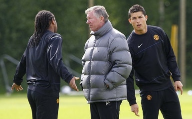 Cristiano Ronaldo na casa de Manchester com o "pai" Ferguson