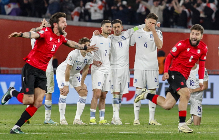 O ‘nulo’ arrastou-se até ao final do prolongamento, pelo que obrigou a que a decisão do apuramento tivesse de sr feita através de penáltis, com a Geórgia a mostrar-se mais competente, ao concretizar quatro dos cinco que bateu, enquanto a Grécia, com o ex-guarda-redes do Benfica Vlachodimos na baliza, só acertou dois remates, em quatro.