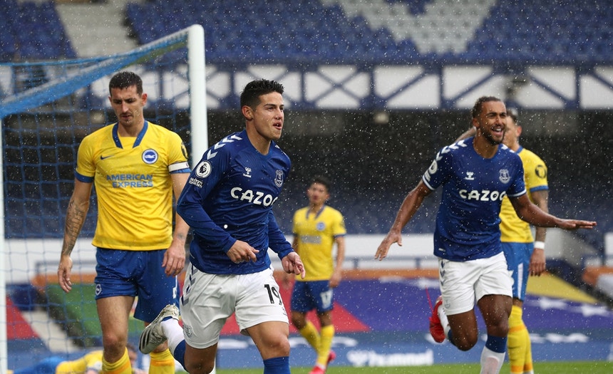O Everton somou sábado a quarta vitória consecutiva no arranque da liga inglesa de futebol, algo que não acontecia há 50 anos, depois de receber e bater o Brighton, por 4-2, com um ‘bis’ do colombiano James Rodriguez.