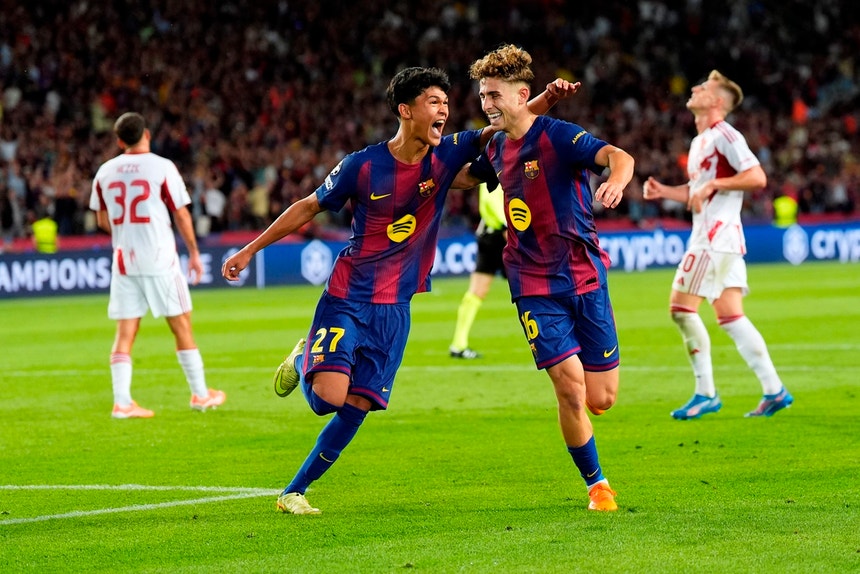 Três semanas depois de ter perdido com reviravolta na receção aos franceses do Paris Saint-Germain (2-1), detentores do troféu, o campeão espanhol bateu em casa os gregos com golos de Fermín Lopez (sete, 39 e 76 minutos) - que nunca tinha feito um ‘hat-trick’ na carreira -, de Lamine Yamal (68), de penálti, e do inglês Marcus Rashford (74 e 79).