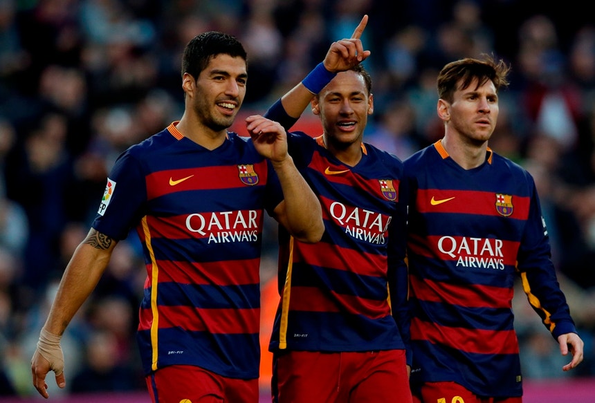 Neymar marcou por duas vezes (22 e 53 minutos), o uruguaio Suárez apontou o segundo (41) e o argentino Messi fechou a contagem (90+1).