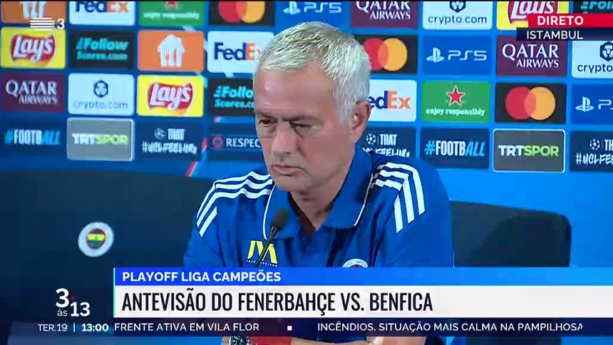 O Fenerbahçe, treinado por José Mourinho, recebe quarta-feira o Benfica, na primeira mão do play-off da 'Champions' em Istambul.