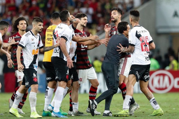 Éverton Ribeiro, no primeiro minuto, Danilo, aos 45+5, na própria baliza, e Bruno Henrique, aos 65 e 80, marcaram para os locais, enquanto Marrony, aos 34, Iago Pikachu, aos 38, de penálti, Marcos Júnior, aos 52, e Ribamar, aos 90+3, faturaram para a equipa forasteira.