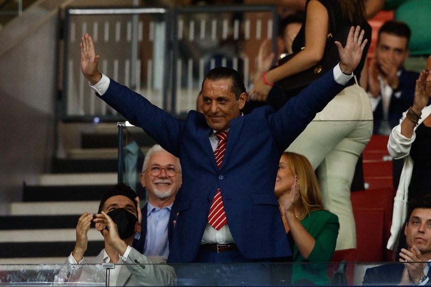 Em pleno Estádio Metropolitano, o antigo extremo de ‘colchoneros’ e ‘dragões’ foi ovacionado pelas bancadas, mostrando-se visivelmente emocionado enquanto acenava aos adeptos dos dois emblemas.