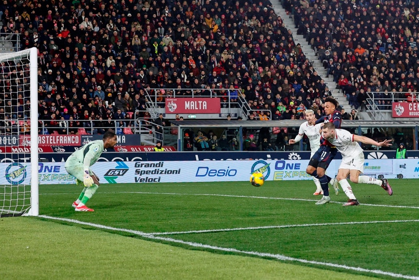 No Estádio Renato Dall’Ara, o antigo jogador do Sporting inaugurou o marcador para os milaneses, quando decorria o minuto 43, mas, logo após o tempo de descanso, o argentino Santiago Castro restabeleceu o empate, aos 48.