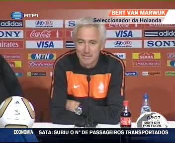À terceira, a Holanda quer que seja de vez. Os holandeses, que perderam as finais de 74 e 78 enfrentam a favorita Espanha. Mas isso não altera uma filosofia de ataque que se notou até na sala de imprensa.