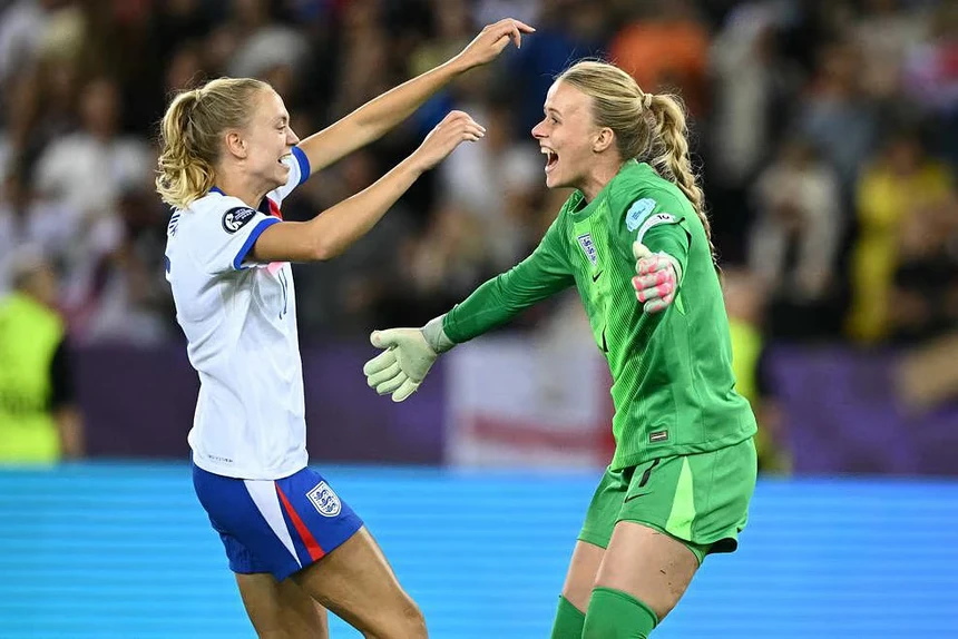 A Inglaterra teve de sofrer para continuar a defesa do título do campeonato da Europa feminino de futebol, mas eliminou a Suécia no desempate por grandes penalidades, após um empate a duas bolas.