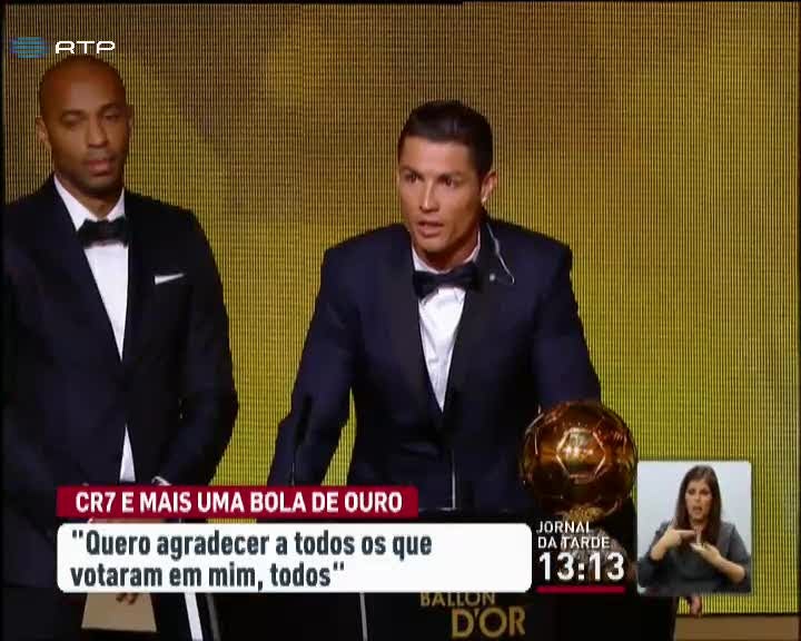 A atribuição da terceira Bola de Ouro ao jogador português mereceu a atenção da imprensa estrangeira, um pouco por todo o mundo. Destacam o grito de Ronaldo no momento da entrega do prémio e a intenção revelada em alcançar o número de Bolas de Ouro de Leonel Messi.