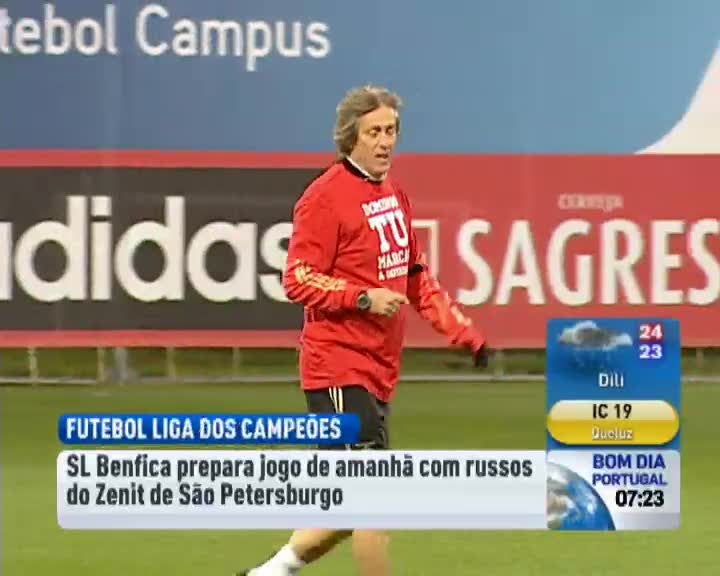 Esta manhã a equipa realizou o derradeiro treino antes do jogo com os russos, no centro de estágio do Seixal. Às 18h45 será tempo do treinador Jorge Jesus fazer a antevisão do jogo com o Zenit, em conferência de imprensa, acompanhado por um jogador.