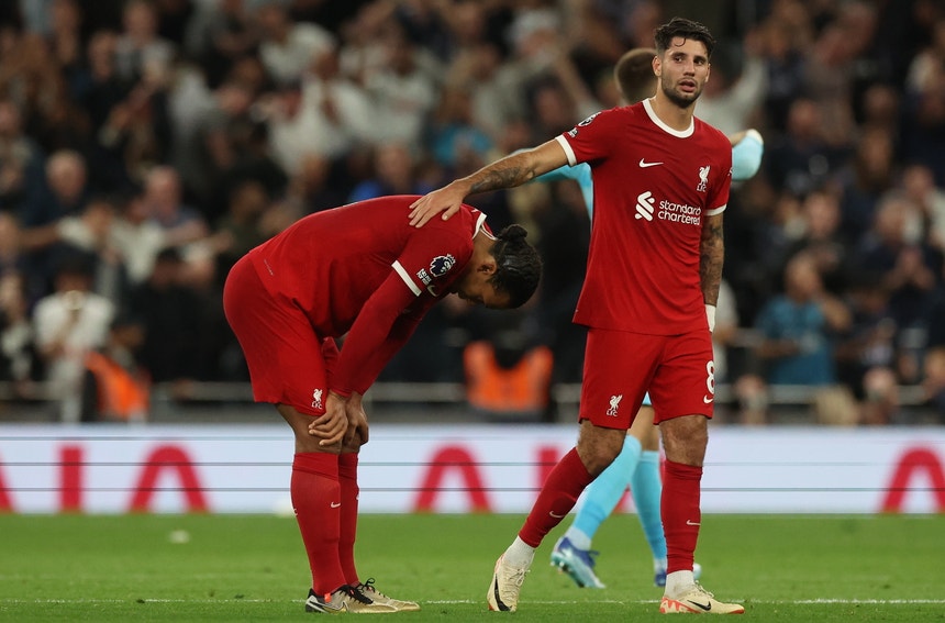 O Liverpool falhou hoje a liderança isolada da Liga inglesa de futebol, com uma derrota por 2-1 no campo do Tottenham, num dia para esquecer para o internacional português Diogo Jota e os ‘reds’, na sétima jornada.