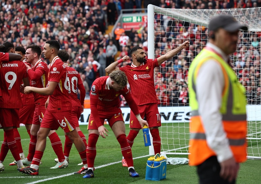 Com 16 pontos de vantagem sobre o Arsenal, segundo classificado, com menos dois encontros, a conquista do 20.º título (igualando o recordista Manchester United) parece uma questão de tempo para os ‘reds’, que voltaram a contar com a eficácia do egípcio Mohamed Salah, autor de dois golos, ambos de grande penalidade.