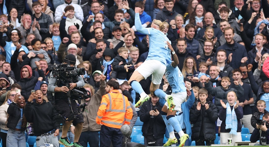 O Manchester City, com mais dois golos de Haaland, juntou-se hoje provisoriamente ao Arsenal na liderança da Liga inglesa de futebol, numa oitava jornada em que Vítor Pereira voltou a perder no Wolverhampton.