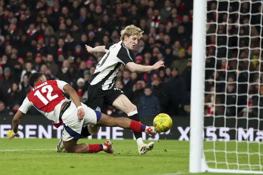 O Newcastle deu um passo importante rumo à final da Taça da Liga inglesa ao vencer o Arsenal no Emirates, por 2-0, na primeira mão da meia-final da competição.