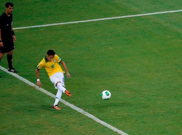 Neymar, que está na lista dos jogadores com três golos na competição, fez treze faltas e sofreu dezoito em três jogos. No jogo com a Itália, que a seleção "canarinha" venceu 4-2, Neymar foi sancionado com um cartão amarelo, depois de uma entrada dura que lesionou o italiano Ignazio Abate.