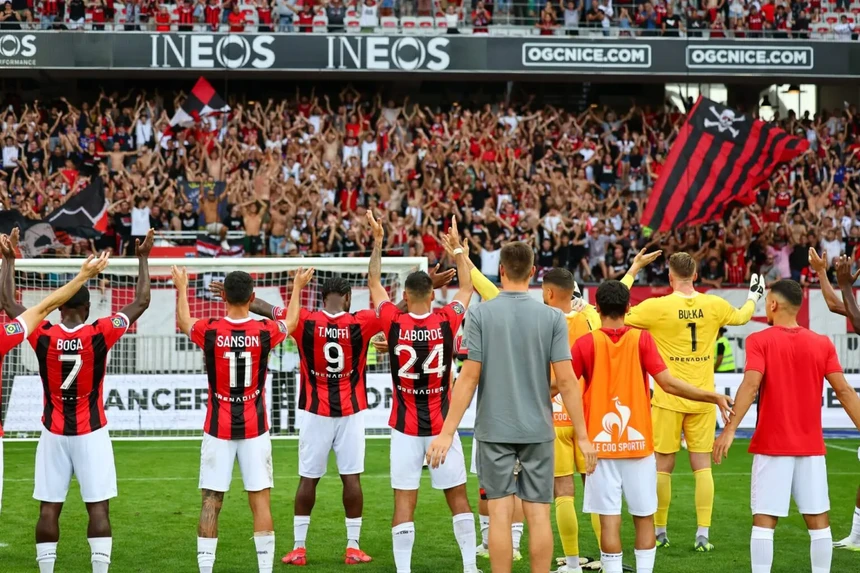A jogar em casa, o Nice, que é a única equipa da prova ainda sem derrotas, inaugurou o marcador em cima do intervalo, com um golo do costa-marfinense Jérémie Boga, aos 45 minutos, e beneficiou de um autogolo de Steve Mandanda, aos 87 minutos, numa altura em que ambas as equipas jogavam com 10.