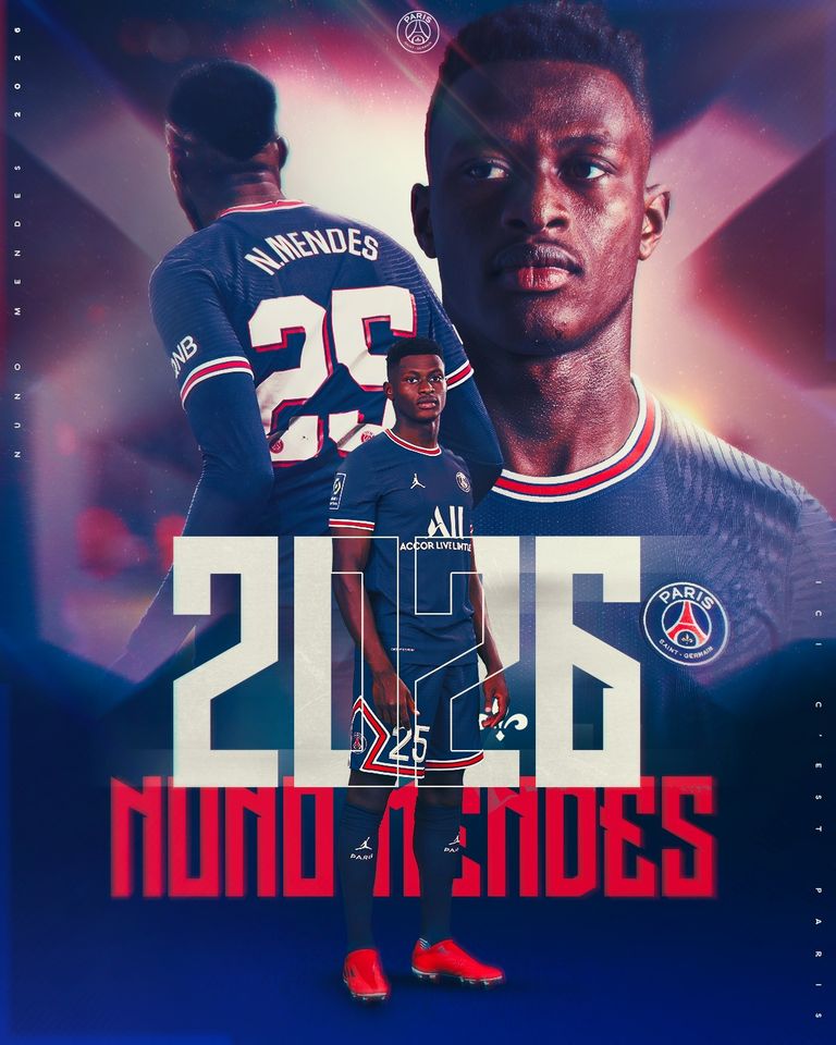 O Paris Saint-Germain acionou a opção de compra do lateral esquerdo português Nuno Mendes, que estava emprestado pelo Sporting e assinou agora um contrato até 30 de junho de 2026 com os campeões franceses de futebol.