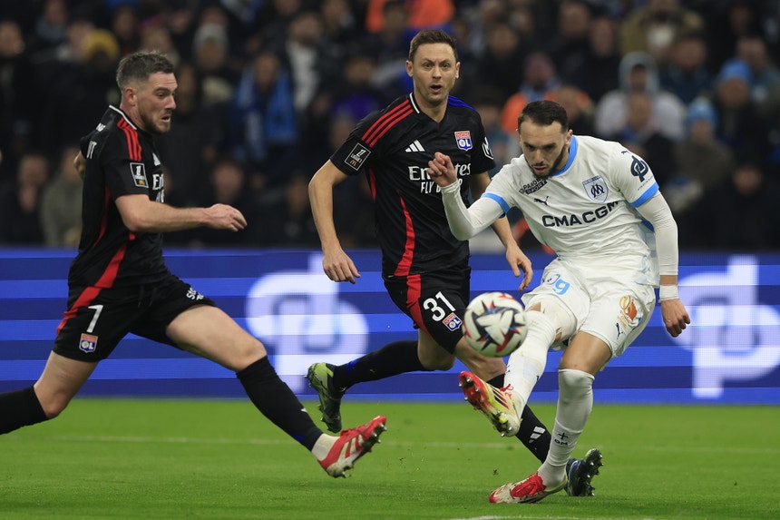 Os marselheses, apoiados por um Velódrome lotado, deram a volta em três minutos, com golos do inglês Mason Greenwood (61 minutos) e de Adrien Rabiot (64), antes de Alexandre Lacazette empatar, aos 72, de grande penalidade.