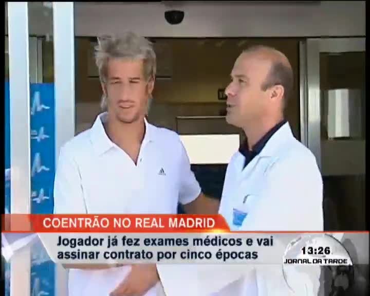 O site oficial do clube mostra já, na manchete, uma foto do jogador português e do presidente do Real Madrid, Florentino Pérez, com a camisola branca com o nome de Coentrão nas costas.