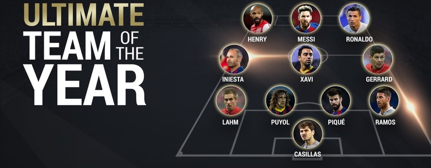 Nomeado em 2005, apenas na segunda ocasião, em 2008, Xavi conseguiu ser realmente eleito – e depois foi difícil desalojá-lo perante o sucesso sem precedentes ao nível do clube e da selecção que o fizeram figurar na equipa durante cinco anos seguidos.