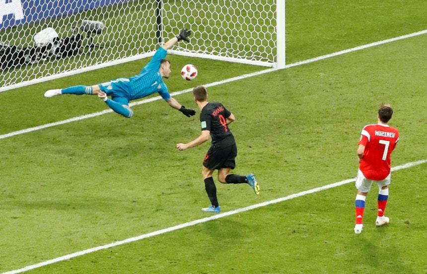 A Croácia qualificou-se para as meias-finais nos penáltis (4-3), mas podia ter resolvido o jogo logo no prolongamento ao ter feito o 2-1, em pleno centésimo minuto, por Domagoj Vida. No entanto, Mário Fernandes, da Rússia, devolveu o sonho aos adeptos russos ao empatar a partida a 2-2. Nas grandes penalidades os croatas foram mais competentes.