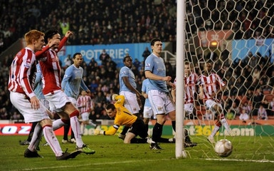 o Stoke venceu com tentos de Kitson (79 minutos), Shawcross (95) e Sanli