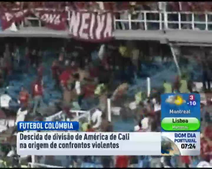 Na Colômbia um jogo de futebol acabou em violência. Tudo por que o América de Cali desceu de divisão. Há pelo menos 12 feridos. Centenas de lojas e carros foram danificados.