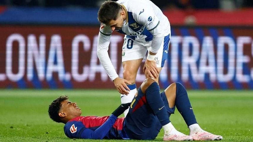 Yamal tem lesão no tornozelo direito e para 3 a 4 semanas