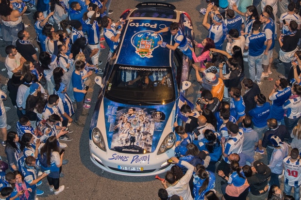 Um momento histórico e uma festa repetida cinco anos depois. A Avenida dos Aliados voltou a encher-se de azul e branco para celebrar mais um título., como testemunhava a repórter da Antena 1, Cláudia Costa.