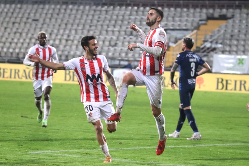 A equipa açoriana adiantou-se no marcador aos 18 minutos, com um golo de Rildo Filho, mas ficou reduzida a 10 aos 29 minutos, por expulsão de Tassano. O Leixões protagonizou a reviravolta nos primeiros 15 minutos da segunda parte, primeiro com um golo de Thalis, aos 51 minutos, e depois com outro do capitão Fabinho, aos 60.
