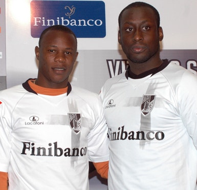 O Vitória de Guimarães, oitavo classificado da Liga de futebol, apresentou hoje oficialmente o angolano Santana Carlos (ex-Petro de Luanda) e Cícero (ex-Dínamo de Moscovo) como reforços para o seu debilitado sector atacante.