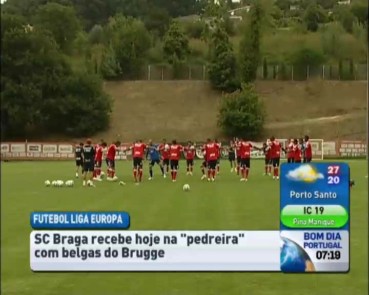 O Sporting de Braga recebe o Brugge da Bélgica para a Liga Europa. Leonardo Jardim tem 19 jogadores disponíveis, mas ainda não poderá contar com Paulo César e Custódio. Ambos já treinam no relvado, mas com algumas restrições, pelo que não serão convocados para o jogo com a equipa belga. Nesta altura, Braga e Brugges lideram o Grupo