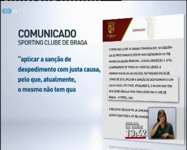 O Sporting de Braga avançou para o despedimento por justa causa do treinador Sérgio Conceição, terminado que está o processo disciplinar instaurado na sequência de "graves factos ocorridos após a final da Taça de Portugal".