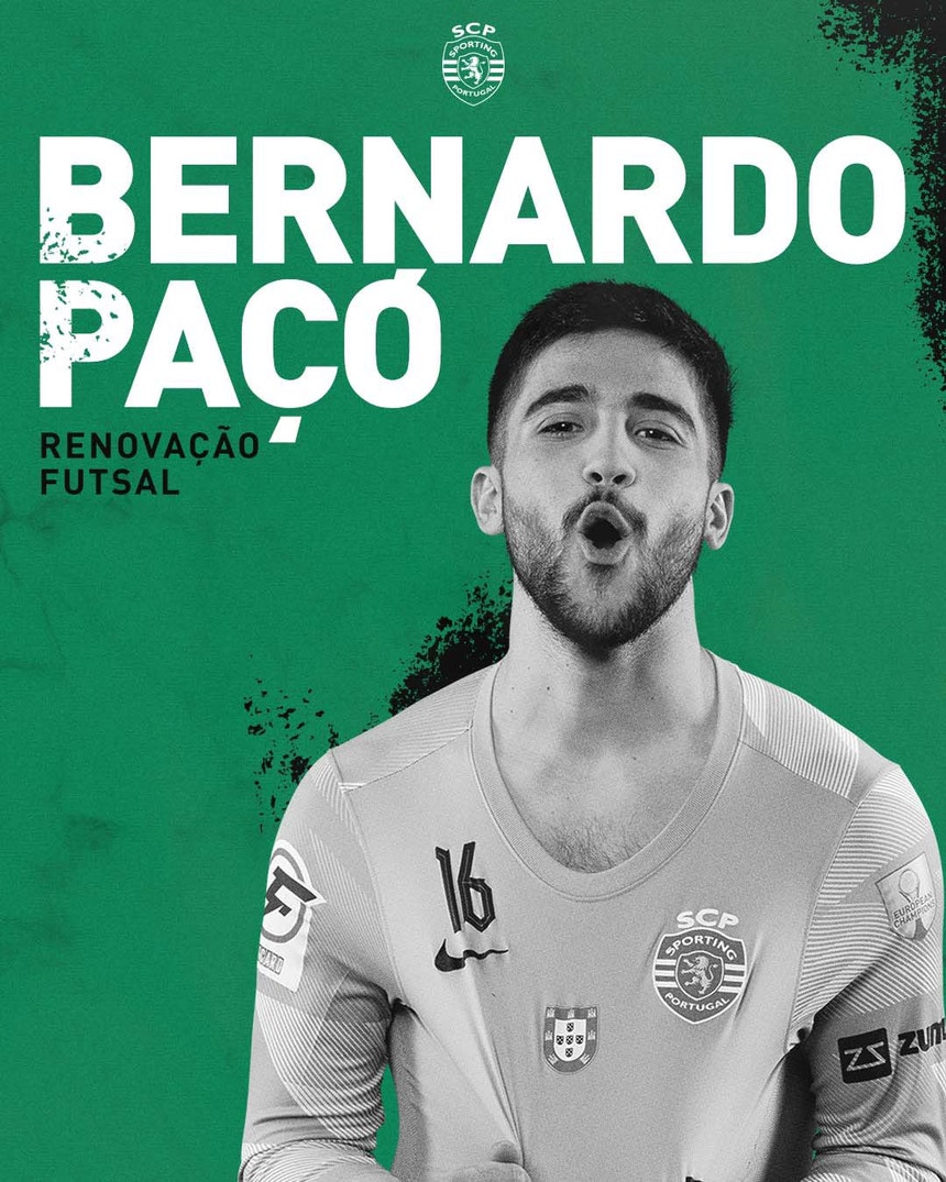 O guarda-redes de futsal português Bernardo Paçó, de 22 anos, renovou contrato com o Sporting, clube a que chegou ainda no escalão de infantis, depois de ter começado a jogar em Olival de Basto.