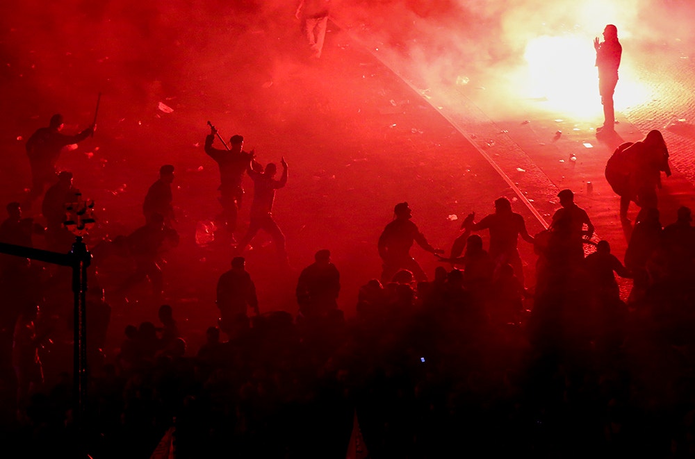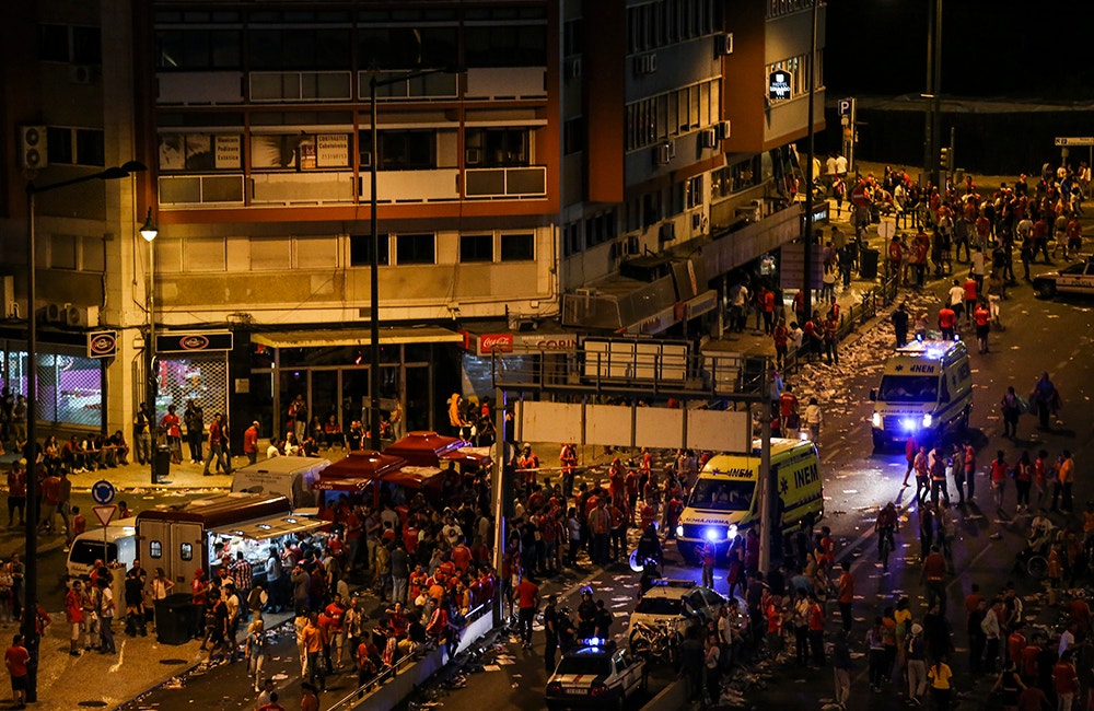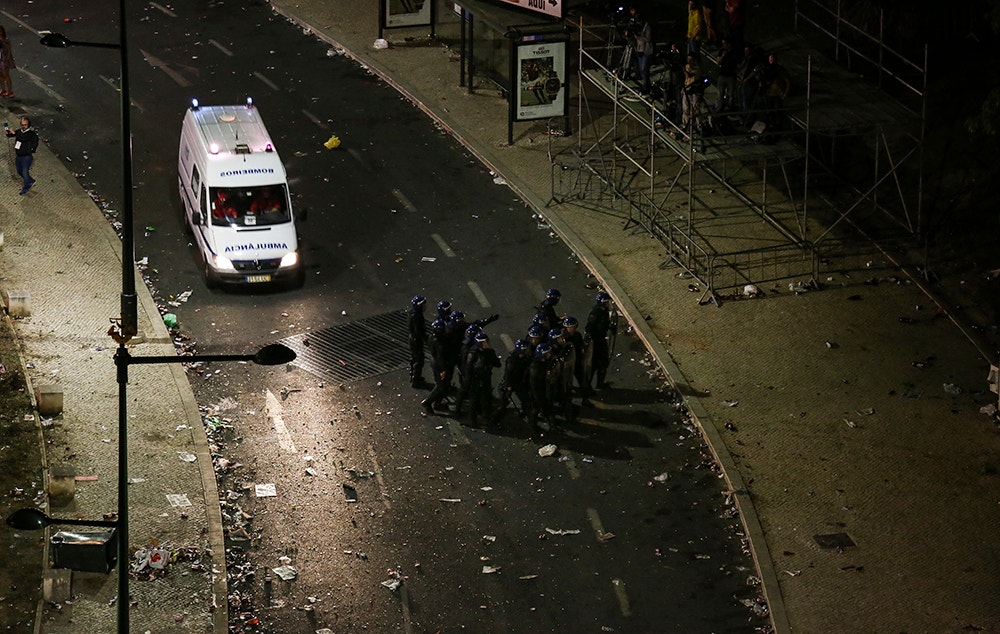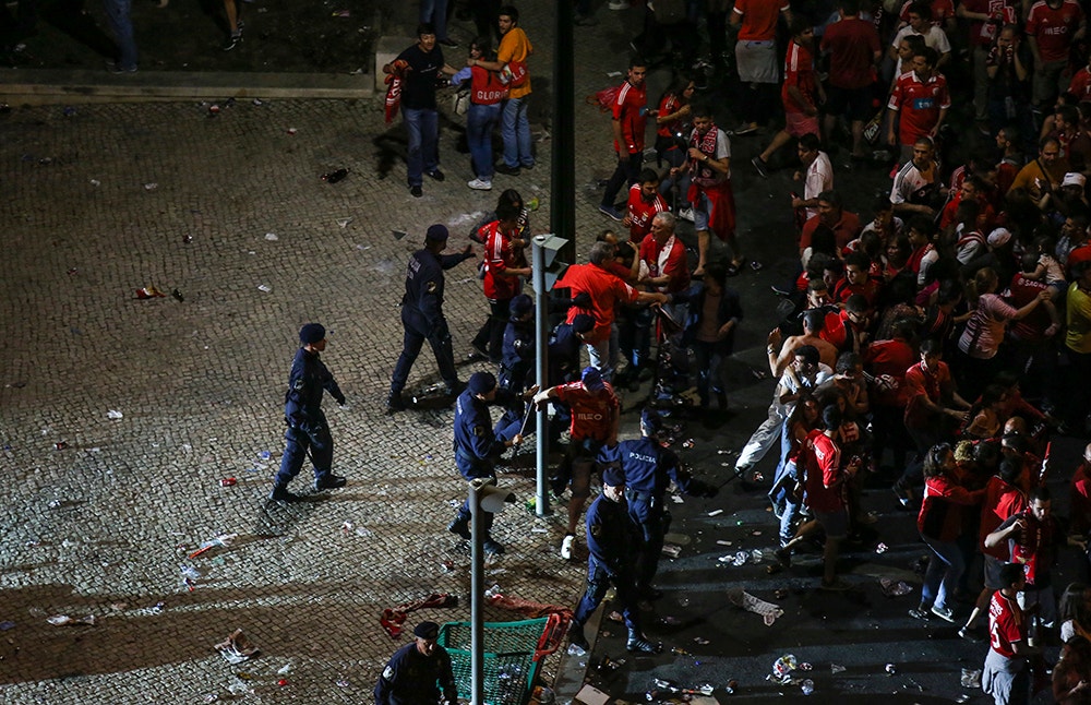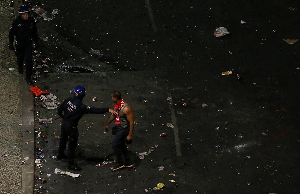 A noite de festejos terminou com confrontos entre a Polícia de Segurança Pública e alguns adeptos.