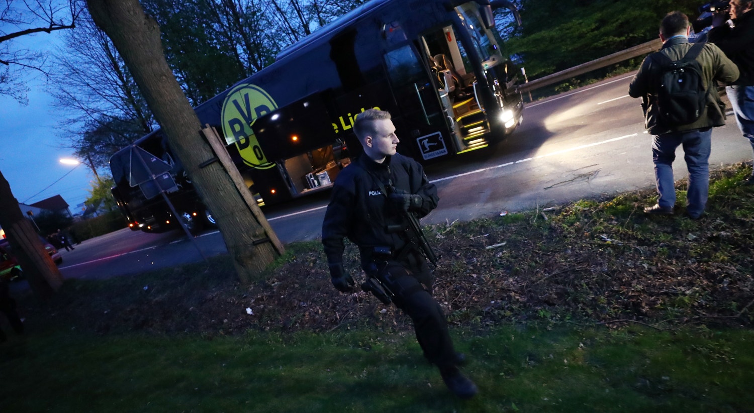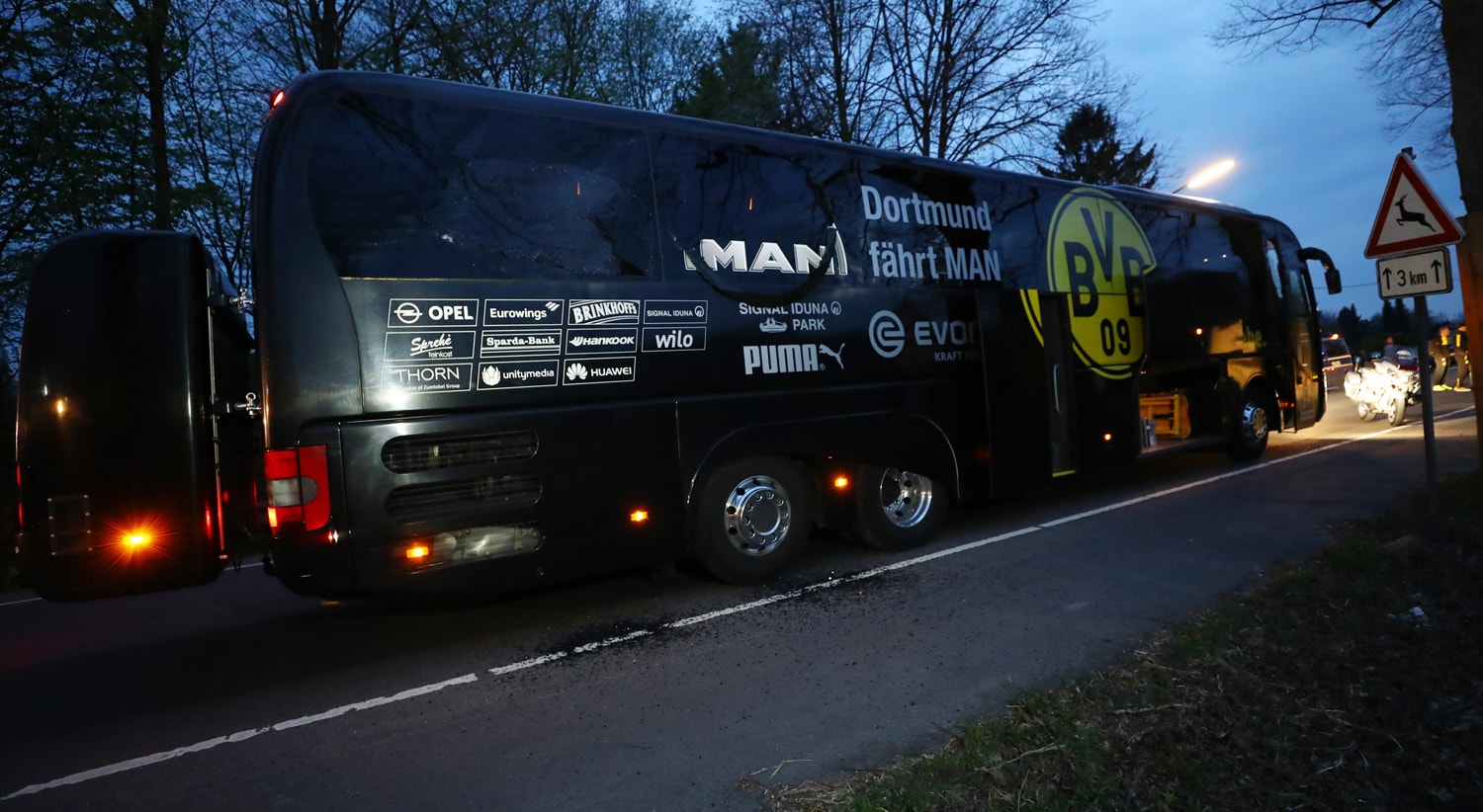O autocarro do Borussia Dortmund foi atingido por uma explosão no trajeto para o estádio Signal Iduna Park, onde o clube germânico deveria defrontar o Mónaco para a Liga dos Campeões. O encontro foi adiado em 24 horas.