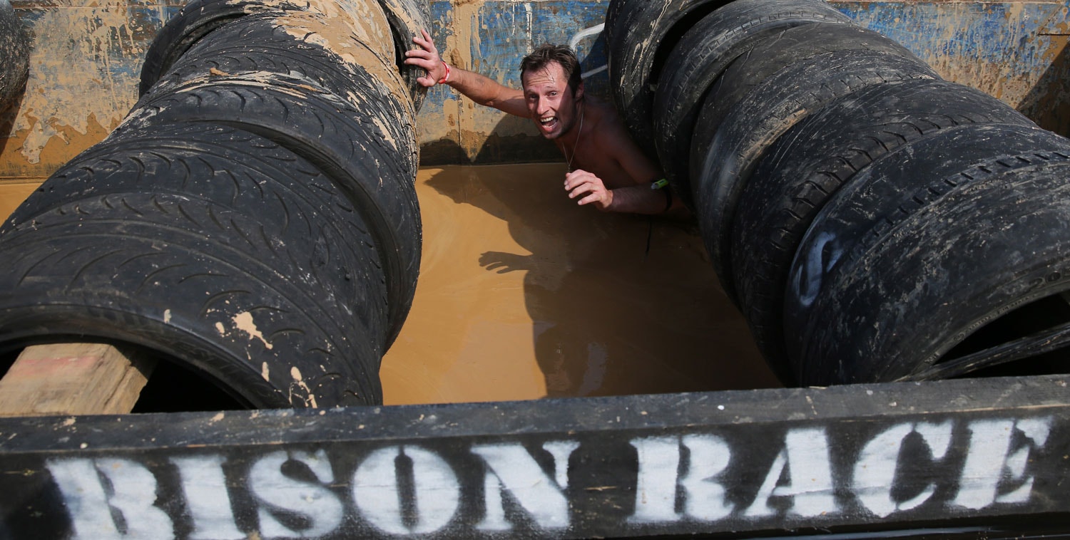 É mais uma das muitas corridas "mais loucas e duras" no mundo. A Extreme Bison Race que se realizou em Logoisk, 40 quilómetros de Minsk, Bielorrússia, dia 11 de agosto. Uma corrida radical com vários obstáculos desafiadores naturais e artificiais. Lama, fogo, pesos, cordas, pneus, enfim, tudo o que serve para complicar aos participantes é útil, nesta prova. Uma prova só para os mais resistentes e persistentes.