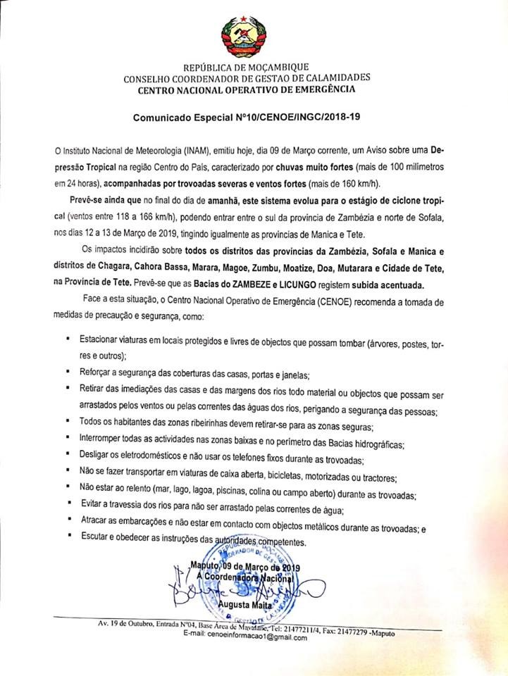 Um ciclone com ventos superiores a 120 quilómetros por hora está a afetar o litoral centro de Moçambique. Com categoria 4, entrou no continente pela costa de Sofala. Prevê-se que continue a avançar em direção a oeste, ainda com ventos a rondar os 160 quilómetros.