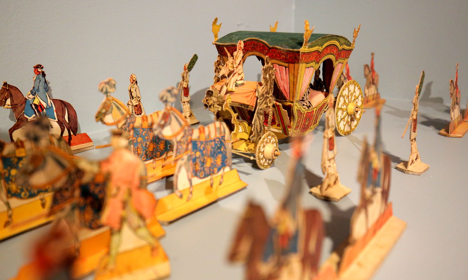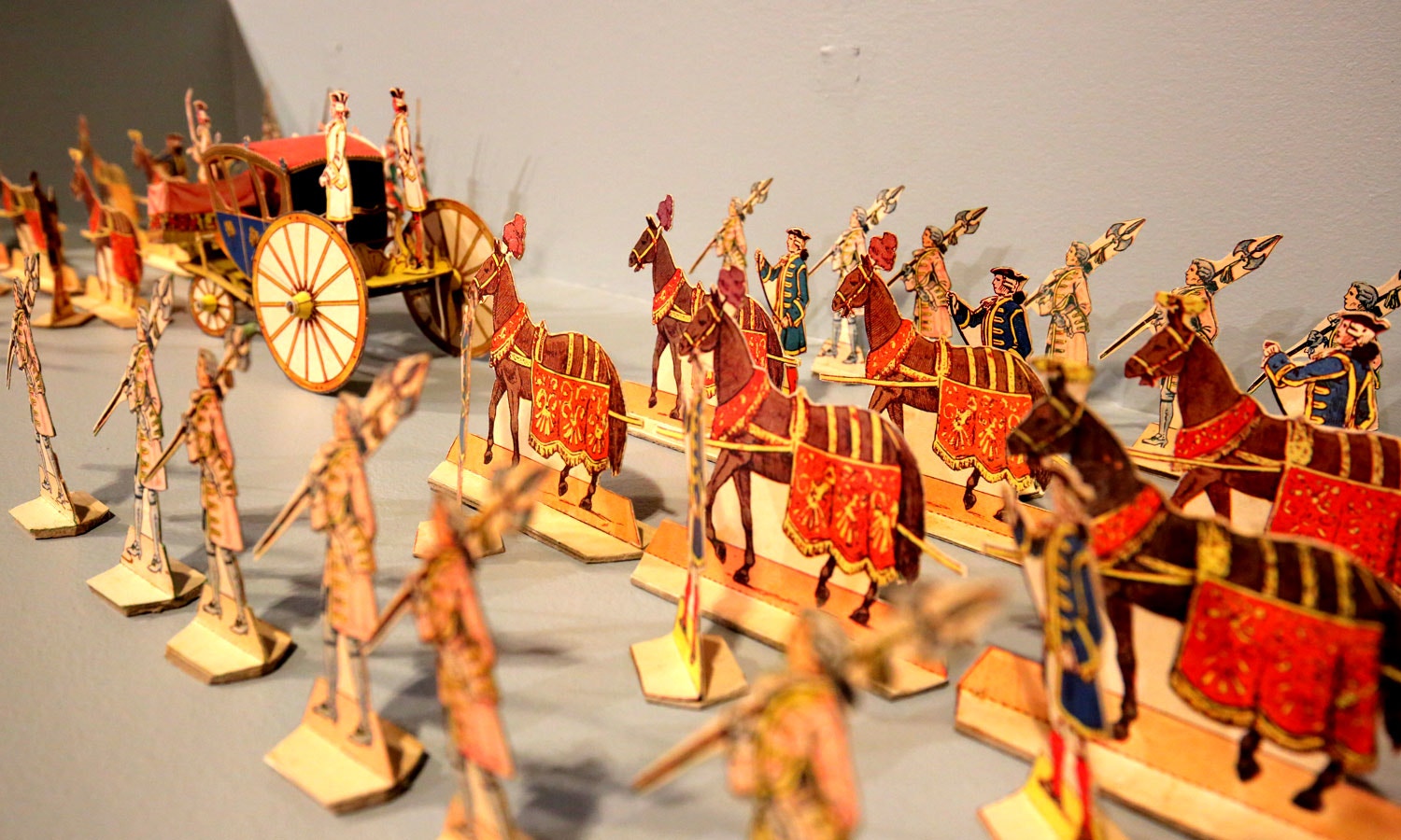 O cortejo que se apresenta em três expositores foi construído na época com as folhas originais, algumas das quais se encontram expostas. A sequência dos veículos e personagens segue a ordem da publicação das folhas, uma vez que a revista nunca elucidou sobre a articulação do conjunto.