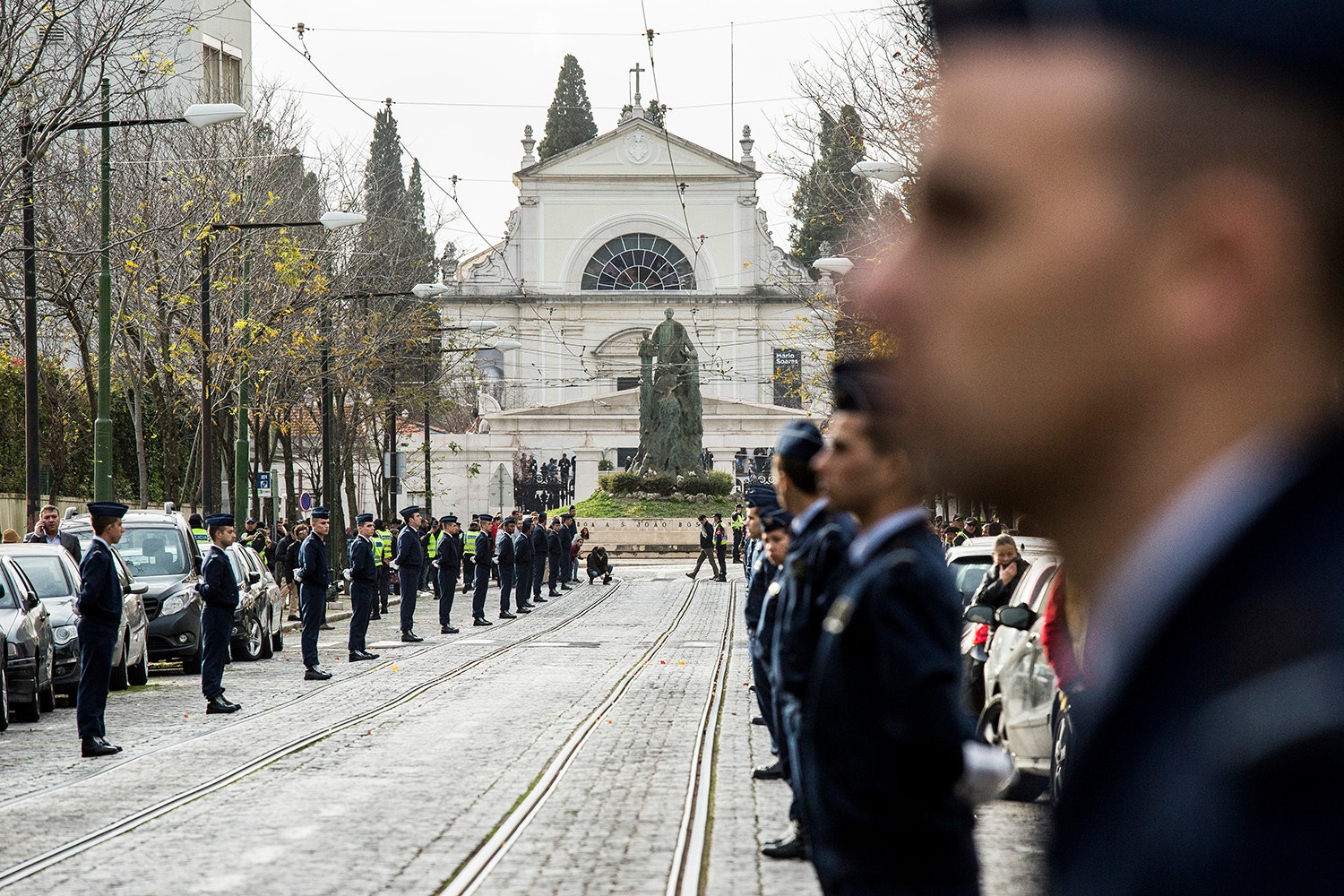 O corpo de Mário Soares chegou esta tarde ao cemitério dos Prazeres, em Campo de Ourique, depois de ter saído do Mosteiro dos Jerónimos, onde esteve em câmara ardente desde domingo. Créditos fotográficos: Nuno Patrício e Pedro A. Pina.