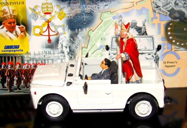 À entrada do Papa Bento XIV na Praça do Município, em Lisboa, o vidro do "papamóvel" desceu e o Santo Padre acenou pondo a mão de fora