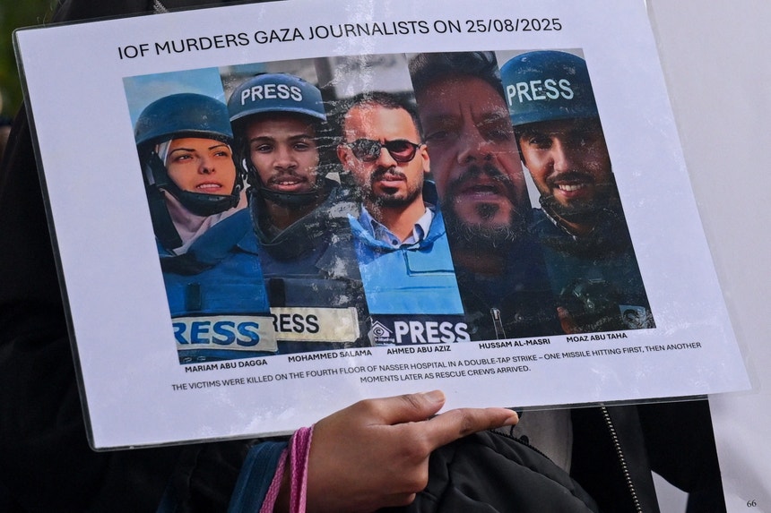Em 25 de agosto, 22 pessoas, incluindo cinco jornalistas, foram mortas em ataques israelitas a um edifício do Hospital Nasser, em Khan Younis, segundo as autoridades de Gaza.